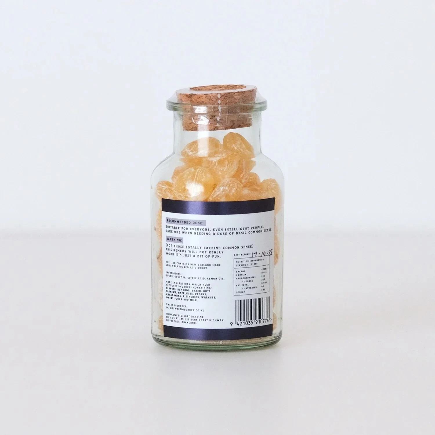 Contains New Zealand made lemon flavoured acid drops.