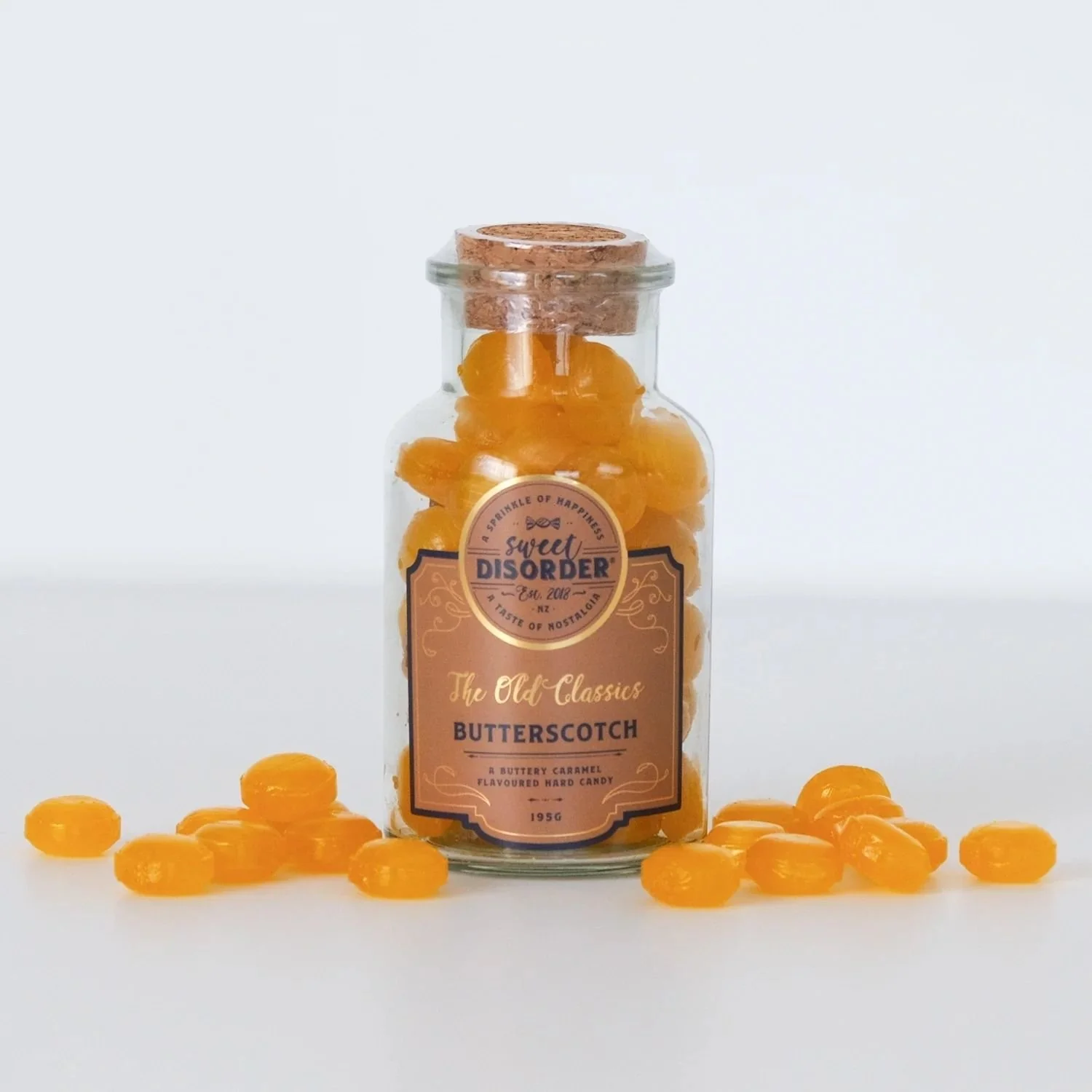 KANDĒ › Old Classics Butterscotch Image 1 of 3 Image 2 of 3 Image 3 of 3 Old Classics Butterscotch $17.00 New Zealand made buttery caramel flavoured hard candies. ADD TO CART Added! New Zealand made buttery caramel flavoured hard candies.